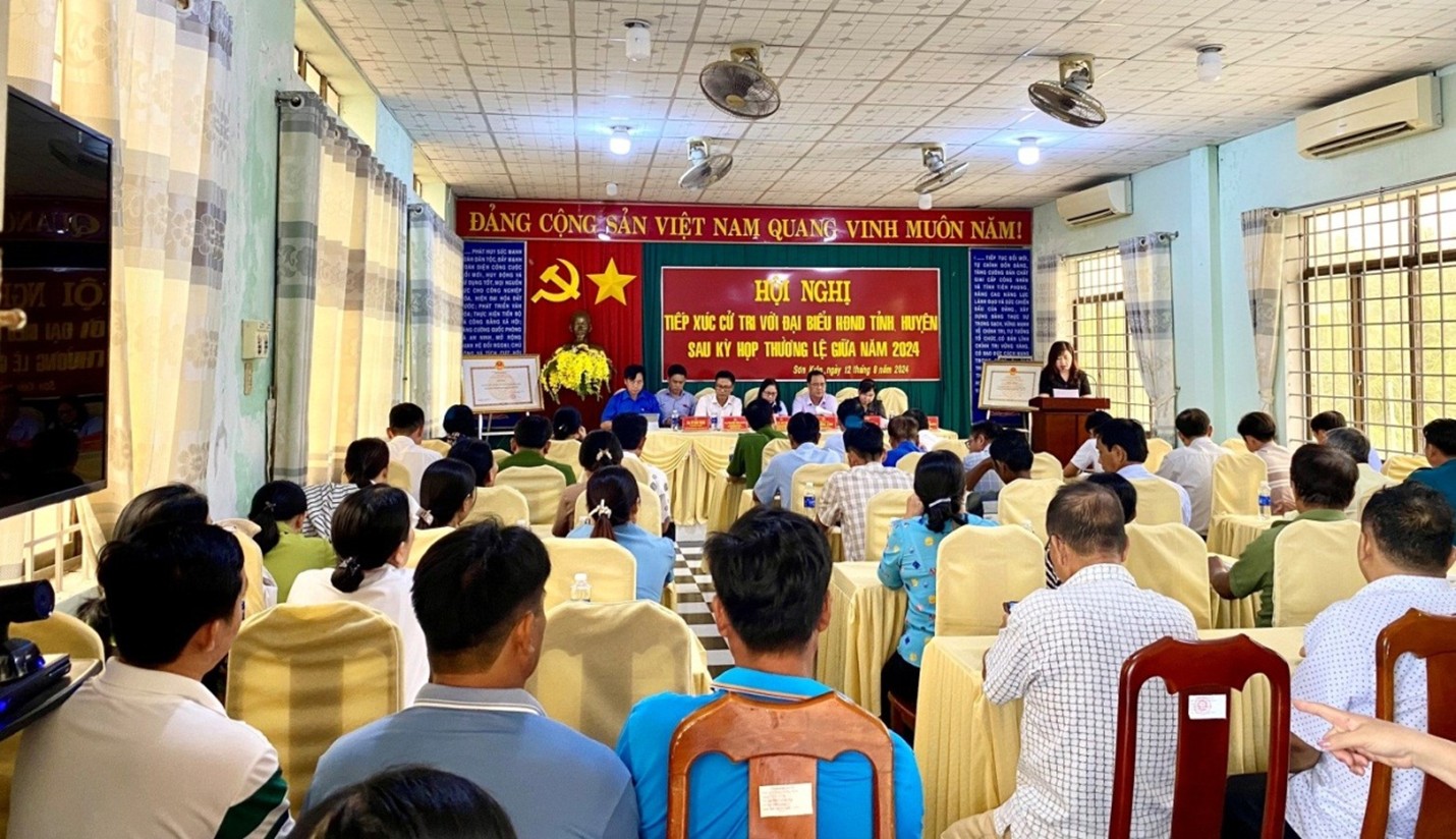 Ngày 12/8/2024, tại Ủy ban nhân dân xã Sơn Kiên, đại biểu Hội đồng nhân dân tỉnh và đại biểu Hội đồng nhân dân huyện Hòn Đất tiếp xúc với cử tri tại xã Sơn Kiên, huyện Hòn Đất. sau kỳ họp thường lệ giữa năm 2024