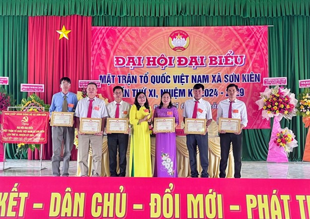 Nhân dịp này, Chủ tịch Ủy ban nhân dân xã Sơn Kiên tặng giấy khen cho 02 tập thể và 06 cá nhân, Chủ tịch Ủy ban MTTQ Việt Nam xã tặng giấy khen cho 01 tập thể và 06 cá nhân đạt thành tích tiêu biểu trong công tác Mặt trậnnhiệm kỳ 2019-2024.