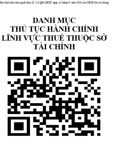aA Danh mục Quyết định số 312/QĐ-UBND, ngày 22 tháng 01 năm 2026 của UBND tỉnh an giang về Danh mục TTHC Lĩnh vực Thuế thuộc Sở Tài Chính 03/02/2026, 17:11 Quay về Chia sẻ Z Copy link thành công Trung tâm phục vụ hành chính công Tin khác Quyết định số 488/QĐ-UBND, ngày 04 tháng 02 năm 2026 của UBND tỉnh an giang về Danh mục TTHC lĩnh vực Văn hóa Cơ sở về Di Sản Văn Hóa Danh mục 21/02/2026 Quyết định số 523/QĐ-UBND, ngày 06 tháng 02 năm 2026 của UBND tỉnh an giang về Danh mục TTHC mới ban hành lĩnh vực Di Sản Văn Hóa thuộc Sở Du Lịch Danh mục 21/02/2026 Quyết định số 521/QĐ-UBND, ngày 05 tháng 02 năm 2026 của UBND tỉnh an giang về Danh mục TTHC lĩnh vực Du Lịch sửa đổi bổ sung thuộc sở Du Lịch Danh mục 21/02/2026 Quyết định số 521/QĐ-UBND, ngày 06 tháng 02 năm 2026 của UBND tỉnh an giang về việc Danh mục TTHC mới ban hành lĩnh vực Việc Làm Danh mục 20/02/2026 Quyết định số 473/QĐ-UBND, ngày 04 tháng 02 năm 2026 của UBND tỉnh an giang Danh mục 20/02/2026 Quyết định số 478/QĐ-UBND, ngày 04 tháng 02 năm 2026 của UBND tỉnh an giang về Danh mục TTHC về lĩnh vực Nộ bộ mới ban hành bị bãi bỏ giữa Cơ quan HCC - NN Danh mục 20/02/2026 Quyết định số 472/QĐ-UBND, ngày 04 tháng 02 năm 2026 của UBND tỉnh an giang về Danh Mục TTHC Lĩnh vực hoạt động Doanh Nghiệp Danh mục 20/02/2026 Quyết định số 263/QĐ-UBND, ngày 19 tháng 01 năm 2026 của UBND tỉnh an giang về Danh Mục TTHC Lĩnh Vực thủy sản và kiểm ngư thuộc sở NN và MT Danh mục 03/02/2026 Quyết định số 208/QĐ-UBND, ngày 14 tháng 01 năm 2026 của UBND tỉnh an giang về Danh mục TTHC Lĩnh Vực viện trợ không hoàn lại thuộc sở tài chính Danh mục 03/02/2026 Quyết định số 424/QĐ-UBND, ngày 30 tháng 01 năm 2026 của UBND tỉnh an giang về Danh Mục TTHC Lĩnh vực mua bán Hàng Hóa Danh mục 03/02/2026 /quyet-dinh-so-312qd-ubnd-ngay-22-thang-01-nam-2026-cua-ubnd-tinh-an-giang-ve-danh-muc-tthc-linh-vuc-thue-thuoc-so-tai-chinh
