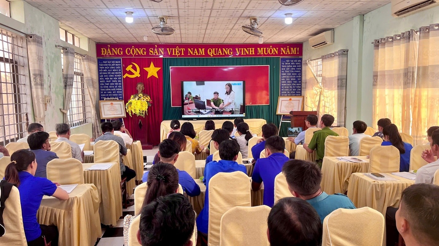 Thành phần tham gia buổi tuyên truyền là cán bộ, công chức xã, thành viên tuyên truyền viên cấp xã, tuyên truyền viên ấp, đoàn viên, thanh niên xã. Với hơn 60 người tham dự.