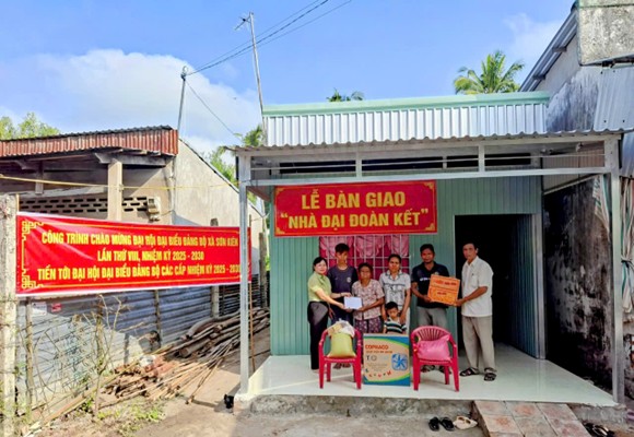 Ngày 25-01/2025, Ủy ban Mặt trận tổ quốc Việt Nam xã Sơn Kiên phối hợp Ban trị sự PGHH xã Sơn Kiên bàn giao nhà đại đoàn kết cho hộ có hoàn cảnh khó khăn về nhà ở tại ấp Vàm Răng, xã Sơn Kiên. Đến tham dự lễ bàn giao có bà Huỳnh Thúy Nhanh – Chủ tịch Ủy ban MTTQ Việt Nam xã Sơn Kiên; ông Lê Hoàng Đá – Phó Trưởng Ban Trị sự Giáo hội Phật giáo xã Sơn Kiên cùng đại diện Ban lãnh đạo, Ban công tác Mặt trận ấp Vàm Răng.